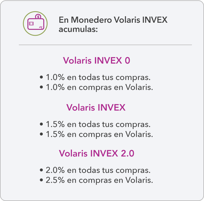 Es la acumulación en dinero electrónico de todas las compras realizadas con tu Tarjeta de Crédito Volaris INVEX.